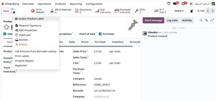 Generate professional Arabic product labels directly from Odoo with barcode visualization and compact formatting. Designed for clarity, faster scanning, and efficient inventory workflows across retail, warehouse, and manufacturing environments.
