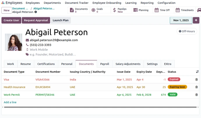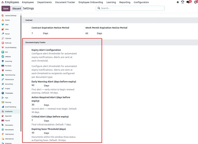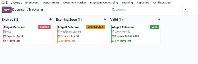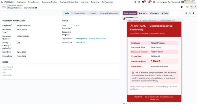 Track employee documents and automate expiry alerts with multi-level notifications. Manage compliance efficiently with structured workflows inside Odoo.