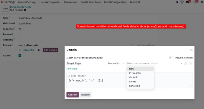 Domain based conditionally show/hide relational fields