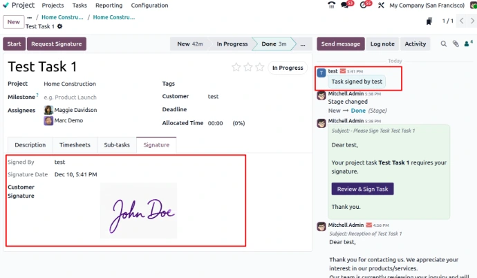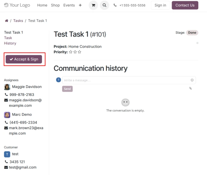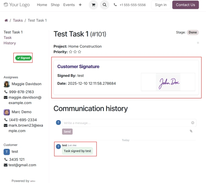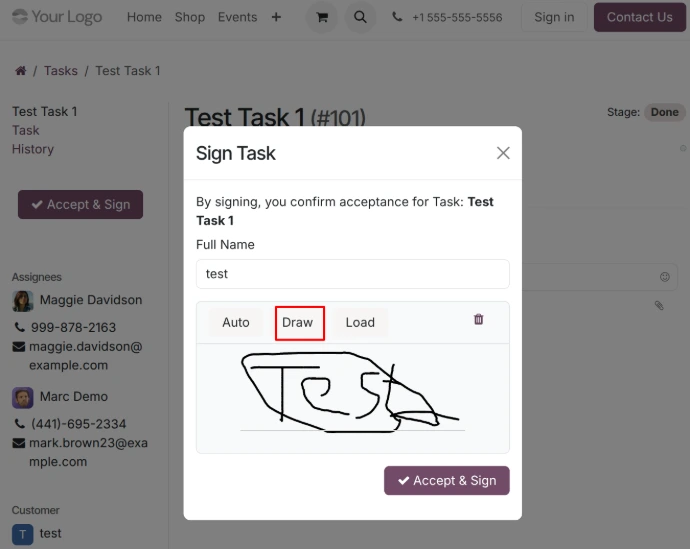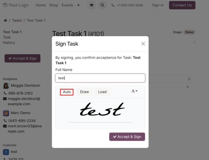 Let customers sign tasks directly from the portal. Request signatures automatically when tasks reach specific stages.
