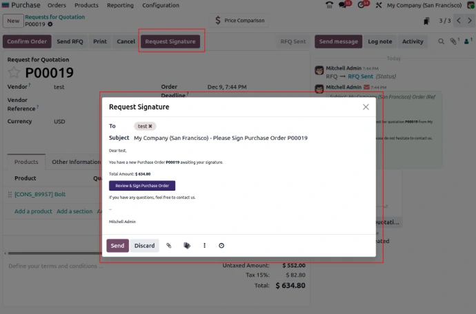 RFQ/PO Signed, Informed via chatter, updated everywhere in print report