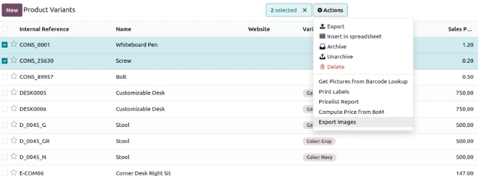 - Supports Product Templates & Variants exports selected or multiple records