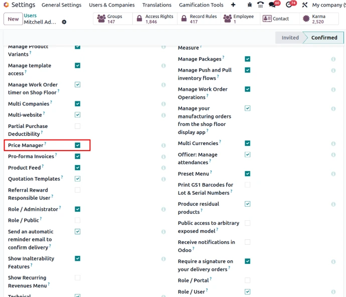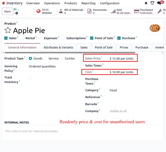 Control who can modify Sales Price and Cost Price in Odoo Products. Only users assigned to the Price Manager role can edit prices, while all other users see price fields as read-only — enforced at both UI and server level.