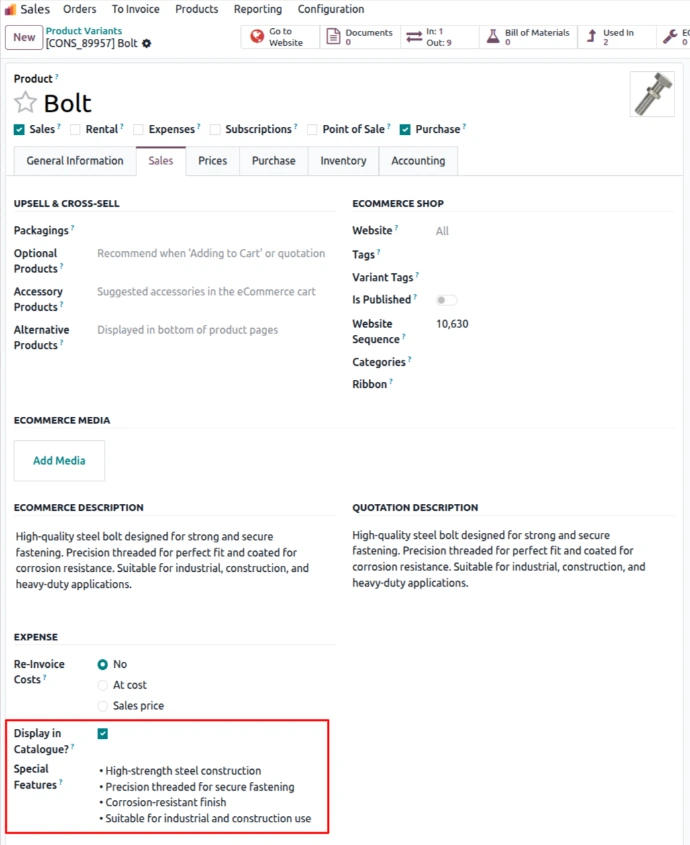 - Select or create a Sales Order with products